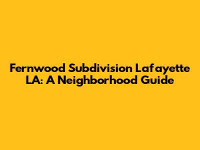 Fernwood Subdivision Lafayette LA: A Neighborhood Guide