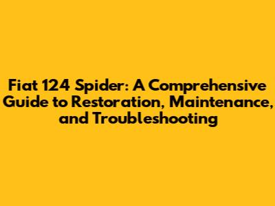Fiat 124 Spider: Restoration, Maintenance, & Troubleshooting