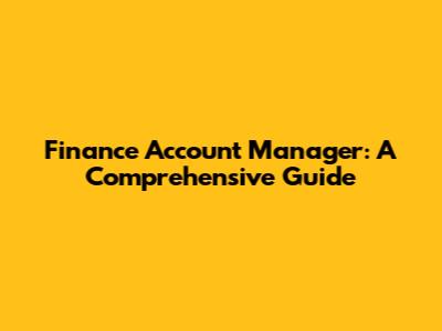 Finance Account Manager: A Comprehensive Guide