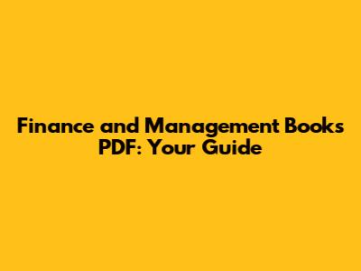 Finance And Management Books PDF: Your Guide