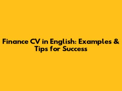 Finance CV In English: Examples & Tips For Success