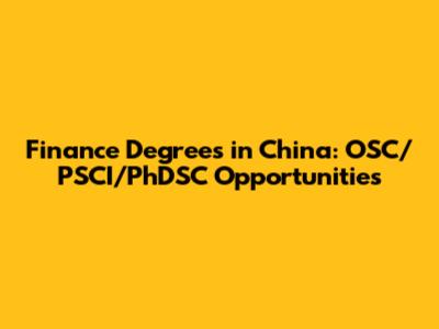 Finance Degrees In China: OSC/PSCI/PhDSC Opportunities
