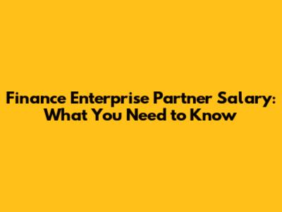 Finance Enterprise Partner Salary: What You Need To Know