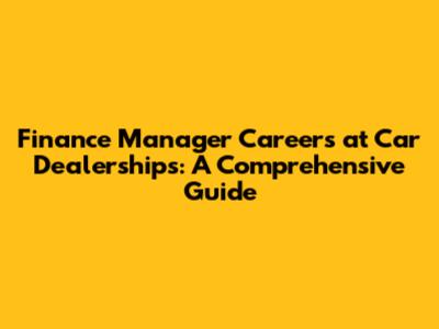 Finance Manager Careers At Car Dealerships: A Comprehensive Guide