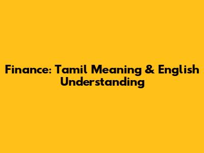 Finance: Tamil Meaning & English Understanding