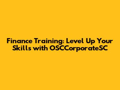 Finance Training: Level Up Your Skills With OSCCorporateSC