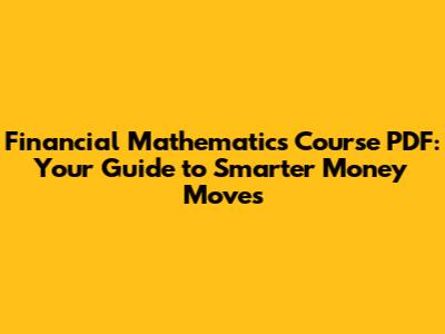 Hey guys! Ever feel like money talks a different language? You know, with all those terms like present value, future value, annuities, and bonds? Well, you're not alone. Financial mathematics is the secret sauce that helps us understand all that jargon and make smarter financial decisions. And guess what? You can get a solid grasp of it with a financial mathematics course PDF! It’s like having a financial wizard in your pocket, ready to break down complex concepts into bite-sized, understandable pieces. We're talking about understanding how loans work, how investments grow, and how to plan for your future, whether that's buying a house, retiring comfortably, or just saving up for that dream vacation. This isn't just for finance gurus; it's for anyone who wants to be in control of their money. We’ll dive into why understanding these mathematical principles is so crucial, how you can find the best free resources, and what key topics you should be looking out for in a good financial math course. Get ready to demystify your finances and unlock a new level of financial literacy, all thanks to the power of a well-structured financial mathematics course PDF. Let's get started on making your money work harder for you!
