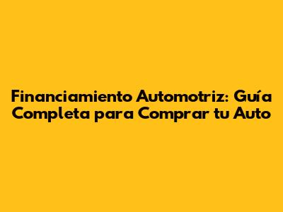 Financiamiento Automotriz: Guía Completa Para Comprar Tu Auto
