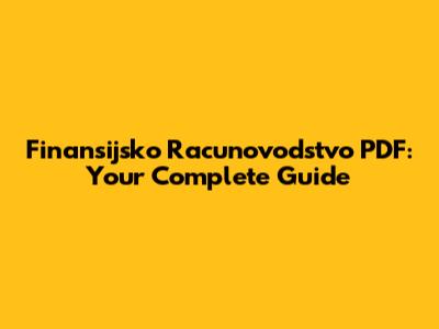 Finansijsko Racunovodstvo PDF: Your Complete Guide
