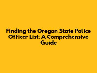 Finding The Oregon State Police Officer List: A Comprehensive Guide