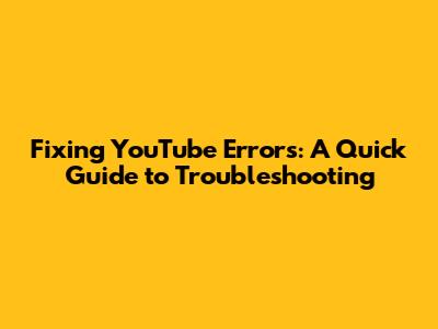 Fixing YouTube Errors: A Quick Guide