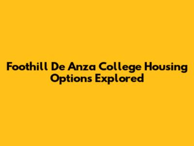 Foothill De Anza College Housing Options Explored