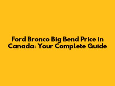 Ford Bronco Big Bend Price In Canada: Your Complete Guide