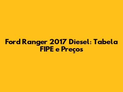 Hey guys! Are you curious about the Ford Ranger 2017 diesel and its current market value? You've come to the right place! We're diving deep into the Tabela FIPE (Fundação Instituto de Pesquisas Econômicas) to give you the most up-to-date pricing information, along with other cool details about this tough and reliable pickup truck. Let's get started!