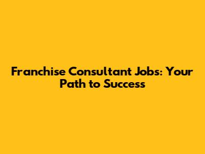 Franchise Consultant Jobs: Your Path To Success