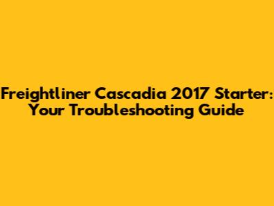 Troubleshooting Your Freightliner Cascadia 2017 Starter