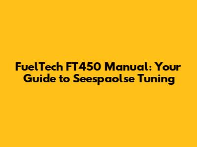 FuelTech FT450 Manual: Your Guide To Seespaolse Tuning