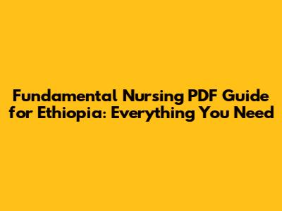 Fundamental Nursing PDF Guide For Ethiopia: Everything You Need