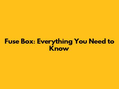 Fuse Box: Everything You Need To Know