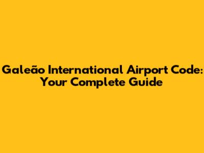 Galeão Airport Code: Everything You Need To Know