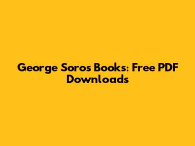 George Soros Books: Free PDF Downloads