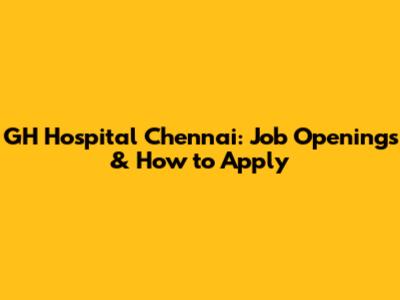 How to Apply for Jobs at GH Hospital Chennai