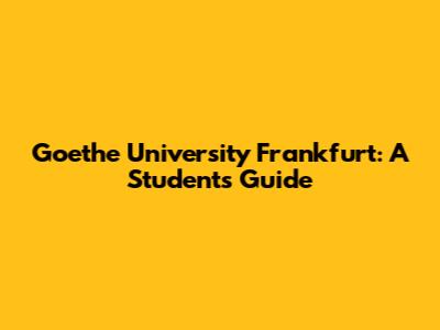Goethe University Frankfurt: A Student's Guide
