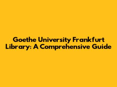 Goethe University Frankfurt Library: A Comprehensive Guide