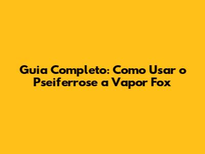 Guia Completo: Como Usar O Pseiferrose A Vapor Fox