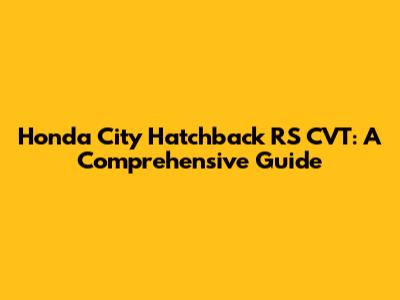 Honda City Hatchback RS CVT: A Comprehensive Guide