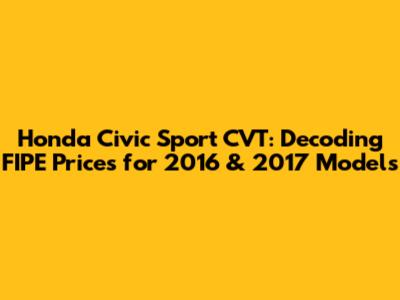 Hey guys! Ever wondered about the real value of your Honda Civic Sport CVT, especially the 2016 and 2017 models? You're not alone! Understanding the FIPE table (Fundação Instituto de Pesquisas Econômicas) is super important whether you're buying, selling, or just curious about your car's worth. Let's dive deep into everything you need to know about Honda Civic Sport CVT FIPE prices for these specific years. We'll break down what FIPE is, why it matters, how it's calculated, and what factors influence it. Plus, we’ll give you some pro tips to make sure you get the best deal possible!
