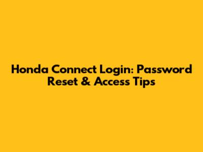 Honda Connect Login: Password Reset & Access Tips