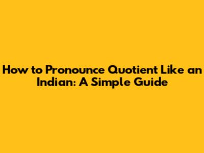How To Pronounce Quotient Like An Indian: A Simple Guide