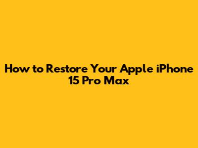 How To Restore Your Apple IPhone 15 Pro Max