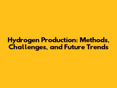 Hydrogen Production: Methods, Challenges, And Future Trends