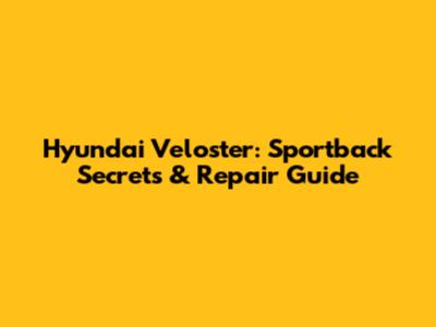 Hyundai Veloster: Sportback Secrets & Repair Guide