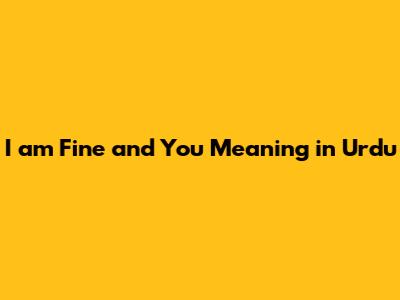 I Am Fine And You: Understanding The Urdu Meaning