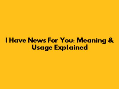 I Have News For You: Meaning & Usage Explained
