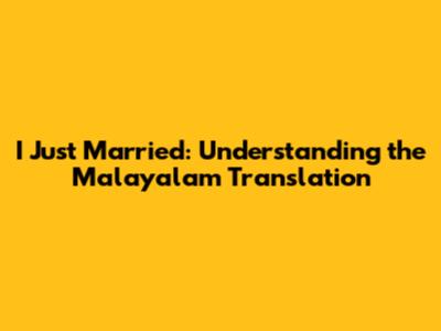 I Just Married: What It Means In Malayalam