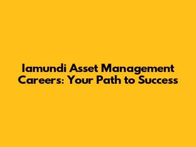 Iamundi Asset Management: Your Career Path