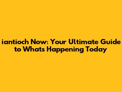 Iantioch Now: What's Happening Today