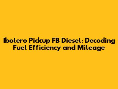 Ibolero Pickup FB Diesel: Fuel Efficiency & Performance