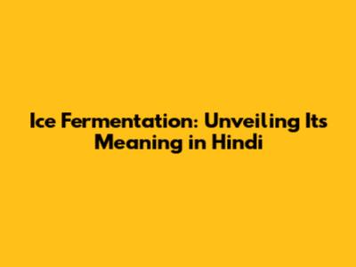 Ice Fermentation: Unveiling Its Meaning In Hindi