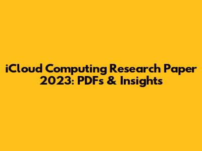 ICloud Computing Research 2023: PDFs & Insights