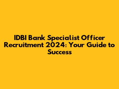 IDBI Bank SO Recruitment 2024: Apply Now!