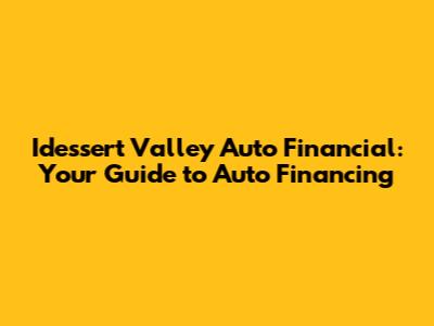 Hey there, car shoppers and finance enthusiasts! Ever wondered about navigating the world of auto financing? Well, buckle up, because we're diving deep into Idessert Valley Auto Financial LLC, a name that might just pop up during your search for the perfect ride. This guide is your friendly companion, breaking down everything you need to know about this financial institution and how they can potentially help you drive off in your dream car. So, grab your coffee, get comfy, and let's unravel the ins and outs of Idessert Valley Auto Financial LLC, shall we?