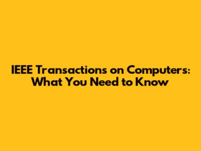IEEE Transactions On Computers: What You Need To Know