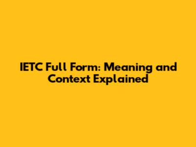 IETC Full Form: Meaning And Context Explained