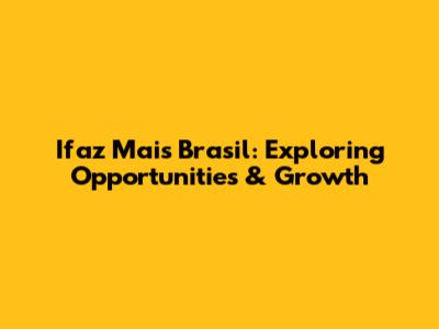 Ifaz Mais Brasil: Exploring Opportunities & Growth