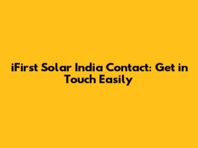 IFirst Solar India Contact: Get In Touch Easily